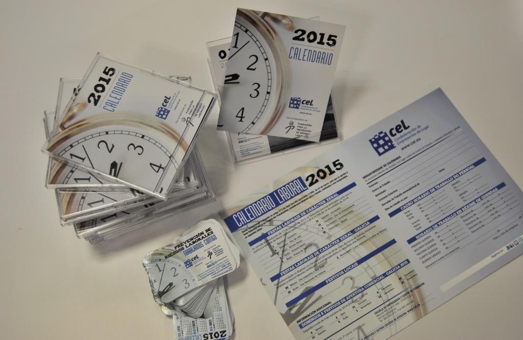 En la sección de documentación de esta web ya podéis descargar el modelo de Calendario Laboral 2015 en pdf, que confeccionamos desde la CEL como todos los años para facilitar su exposición en vuestros centro de trabajo, en cumplimiento de lo establecido en la Ley del Estatuto de Trabajadores (el Art. 34.6 dispone expresamente la obligatoriedad de exposición en un lugar visible para empresas con trabajadores).