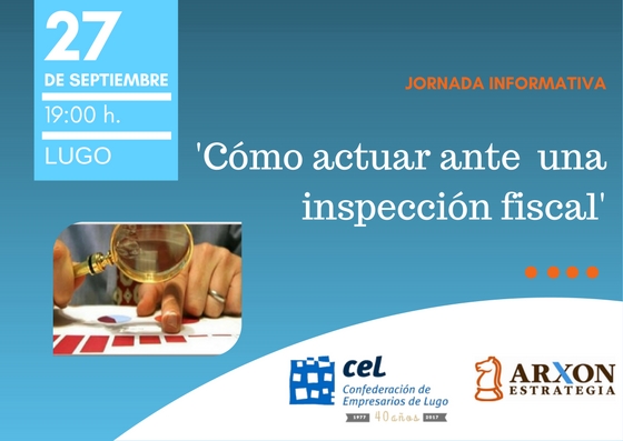 A Confederación de Empresarios de Lugo organiza unha xornada informativa sobre 'Como actuar ante unha inspección fiscal', que terá lugar na súa sede central en Lugo o día 27 de setembro próximo, mércores, en horario de 19:00 a 20:30 horas.