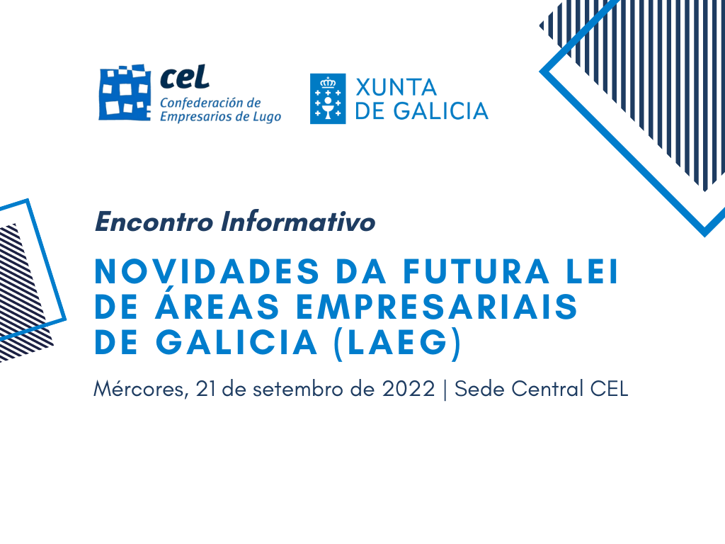 A sede central da Confederación de Empresarios de Lugo (CEL) acolle o próximo día 21 de setembro de 2022, mércores, ás 11:00 horas, un encontro coa Conselleira de Medio Ambiente, Territorio e Vivenda, Anxos Vázquez Mejuto, no que se presentará a futura Lei de Áreas Empresariais de Galicia (LAEG), actualmente en tramitación parlamentaria e que se prevé aprobar a finais deste mes de setembro.