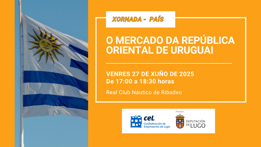 La Confederación de Empresarios de Lugo (CEL) organiza para el próximo viernes 27 de junio la jornada – país “El Mercado de la República Oriental de Uruguay”, en el marco de las actividades que la entidad pone en marcha con el apoyo de la Diputación de Lugo.