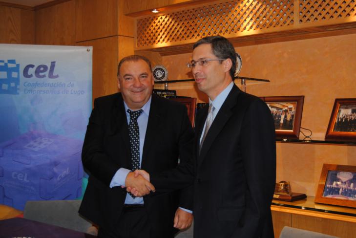 La Confederación de Empresarios de Lugo (CEL) y Novagalicia Banco suscribieron hoy un convenio de colaboración con el objetivo de facilitar el acceso a productos y servicios financieros de esta entidad bancaria en condiciones ventajosas por parte de las Asociaciones y empresarios asociados a la CEL.