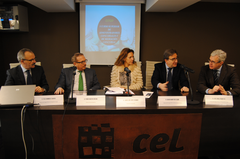 La Escuela de Empresarios de la CEL acogió hoy la presentación del I Curso Superior de Administradores Concursales y Mediación Concursal, una iniciativa de formación pionera que organiza el Centro Universitario Villanueva (adscrito a la Universidad Complutense de Madrid) y la Escuela Sapientia en diferentes ciudades españolas, siendo Madrid y Lugo pioneras en acoger este tipo de formación.