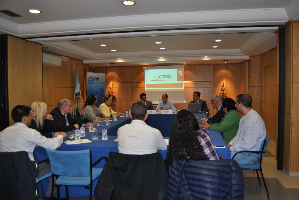 Un grupo de empresarios participaron hoy en una jornada informativa organizada por la Confederación de Empresarios de Lugo (CEL) en colaboración con CTIC Centro Tecnológico de la Información y la Comunicación con el objetivo de difundir nuevas soluciones tecnológicas para empresas y analizar en profundidad la convocatoria Innterconecta, orientada a la financiación de proyectos de I+D promovidos por consorcios empresariales, y cómo pueden acceder pymes y microempresas a este tipo de ayudas.