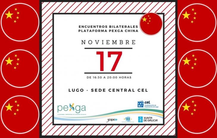 La sede central de la Confederación de Empresarios de Lugo (CEL), recibe el próximo día 17 de noviembre, jueves, al director de la Plataforma Pexga en China, Javier Bahut Vega, con el que las empresas lucenses interesadas en el mercado asiático podrán mantener encuentros bilaterales, en horario de 16:30 a 20:00 horas.