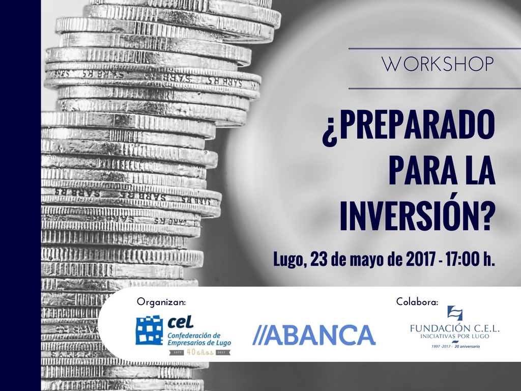 La Confederación de Empresarios de Lugo (CEL) y ABANCA organizan, con la colaboración de la Fundación CEL - Iniciativas por Lugo, el Workshop "¿PREPARADO PARA LA INVERSIÓN?. Lo que debes saber de finanzas en tu empresa", que tendrá lugar en la sede central de la CEL el martes día 23 de mayo de 2017, en horario de 17:00 a 19:30 horas.