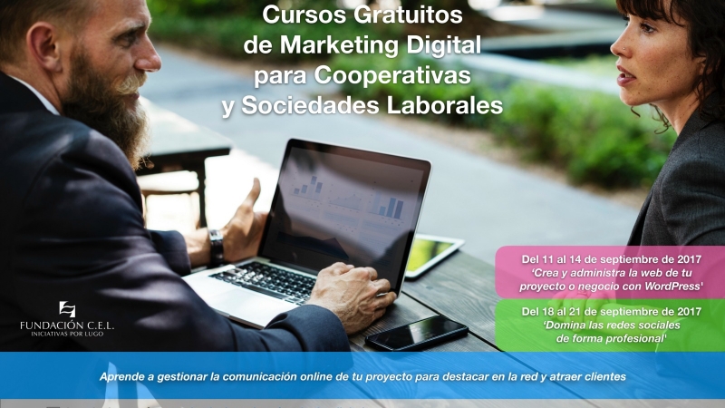 Tras el éxito cosechado en la primera edición celebrada en 2016, un año más la Fundación CEL – Iniciativas por Lugo ofrece la posibilidad de asistir a dos cursos en materia de marketing online, completamente gratuitos y especialmente dirigidos a Cooperativas, Sociedades Laborales de reciente creación y emprendedores de economía social.