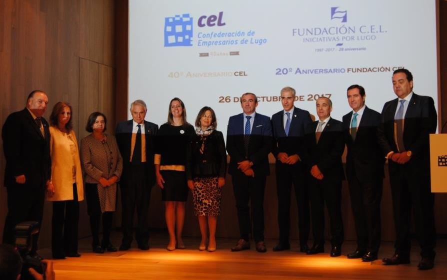 La Confederación de Empresarios de Lugo (CEL) y su fundación para emprendedores, la Fundación CEL Iniciativas por Lugo celebraron el día 26 de octubre los actos conmemorativos de su cuadragésimo y vigésimo aniversario, respectivamente, en el Centro Cultural “O Vello Cárcere” de Lugo, con la asistencia de más de un centenar de invitados entre los que se encontraban el presidente de Cepyme, Antonio Garamendi; el presidente de la Diputación de Lugo, Darío Campos; el conselleiro de Economía e Industria, Francisco Conde; o la alcaldesa de Lugo, Lara Méndez, entre otros.