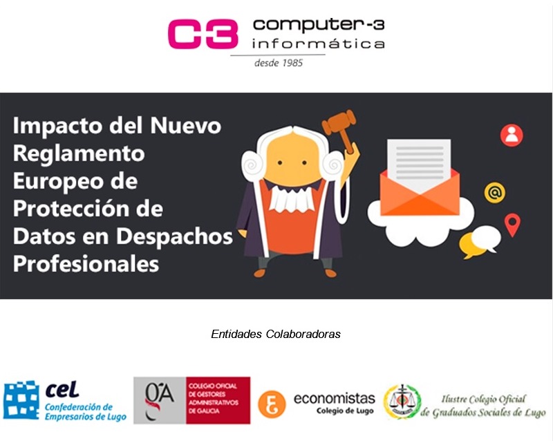 La sede central de la CEL acoge el próximo miércoles, 29 de noviembre, a las 17:00 horas, una jornada informativa organizada por Computer -3, para analizar cómo afecta el nuevo reglamento europeo de protección de datos a los despachos profesionales, asesorías y gestorías. Las plazas son limitadas y se cubrirán por riguroso orden de inscripción.