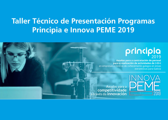 La Axencia Galega de Innovación (GAIN) organiza en Lugo un taller práctico sobre la convocatoria 2019 de sus programas de ayudas Principia e Innova Peme, orientados a impulsar la innovación por parte de las microempresas y pymes gallegas. El taller tendrá lugar en las instalaciones de nuestra Fundación el próximo día 27 de febrero, miércoles, en horario de mañana (a partir de las 9:30 horas), e incluye la posiblidad de concertar reuniones bilaterales.