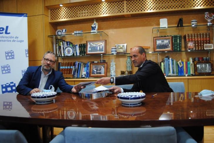 El acto de firma del convenio tuvo lugar hoy en la sede central de la organización empresarial lucense, con la presencia de Manuel Lolo, CEO de AMSlab, y Jaime López, secretario general de la CEL.