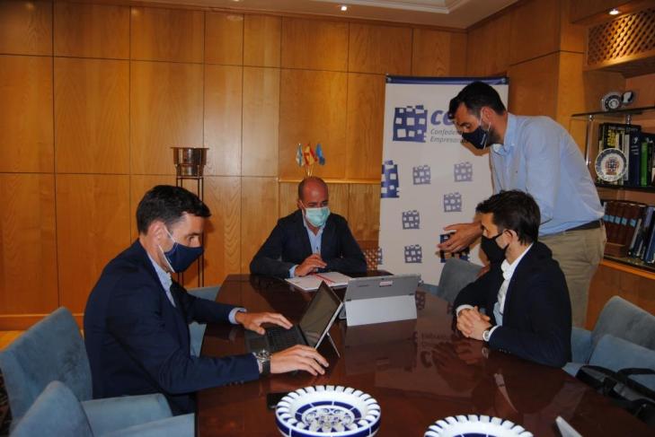 Representantes de Macrocopia, entre los que se encontraba su CEO, Jorge Rois, y el secretario de la Confederación de Empresarios de Lugo (CEL), Jaime López, se reunieron recientemente en la sede de la organización empresarial lucense para analizar la situación de la misma en materia tecnológica.