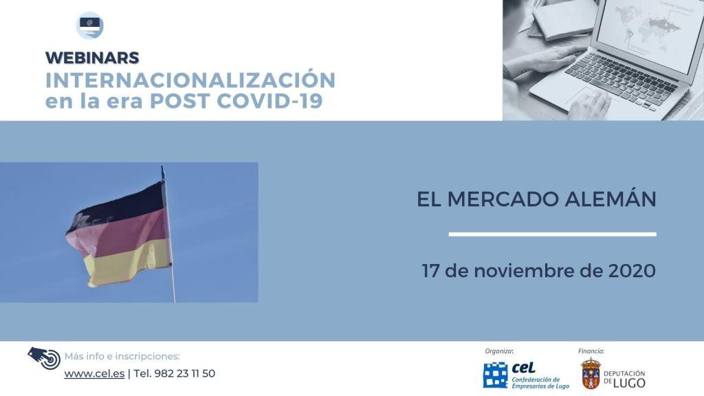 La Confederación de Empresarios de Lugo (CEL) celebrará el próximo día 17 de noviembre el webinar "El mercado alemán", enmarcado en ciclo de seminarios online "Internacionalización en la era post COVID-19" que, con el apoyo de la Deputación de Lugo, pone en marcha la organización empresarial lucense.