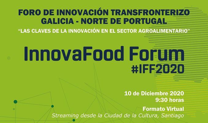 El próximo jueves, 10 de diciembre, se celebrará el Foro de Innovación Transfronterizo Galicia-Norte de Portugal, InnovaFood Forum 2020, en streaming desde la Ciudad de la Cultura en Santiago.