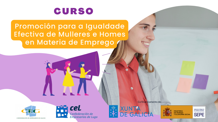 La Confederación de Empresarios de Lugo (CEL) organiza, en el marco del programa de acciones formativas dirigidas a la capacitación para el desarrollo de funciones relacionadas con el Diálogo Social y la Negociación Colectiva, un nuevo curso formativo en el que se ahondará en los diferentes aspectos de la "Promoción para la igualdad efectiva de mujeres y hombres en materia de empleo".