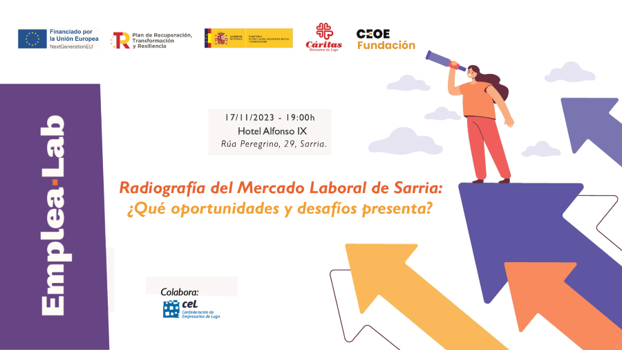 La Fundación CEOE, Cáritas Diocesana de Lugo y la Confederación Empresarial de Lugo (CEL) organizan para este viernes, día 17 de noviembre, el encuentro Radiografía del mercado laboral en Sarria: ¿qué oportunidades y desafíos presenta?.