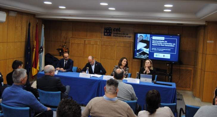La sede central de la Confederación de Empresarios de Lugo (CEL) acogió la jornada informativa Oportunidades de financiación e inversión: un repaso a los Next Generation, puesta en marcha por la entidad con el apoyo de la Deputación de Lugo y que contó con las aportaciones de Zaira Dapena, directora territorial de ABANCA en Lugo; Mónica Gondar, responsable del Área Next Generation de ABANCA y Jacobo Ortiz, director comercial de AFIGAL.