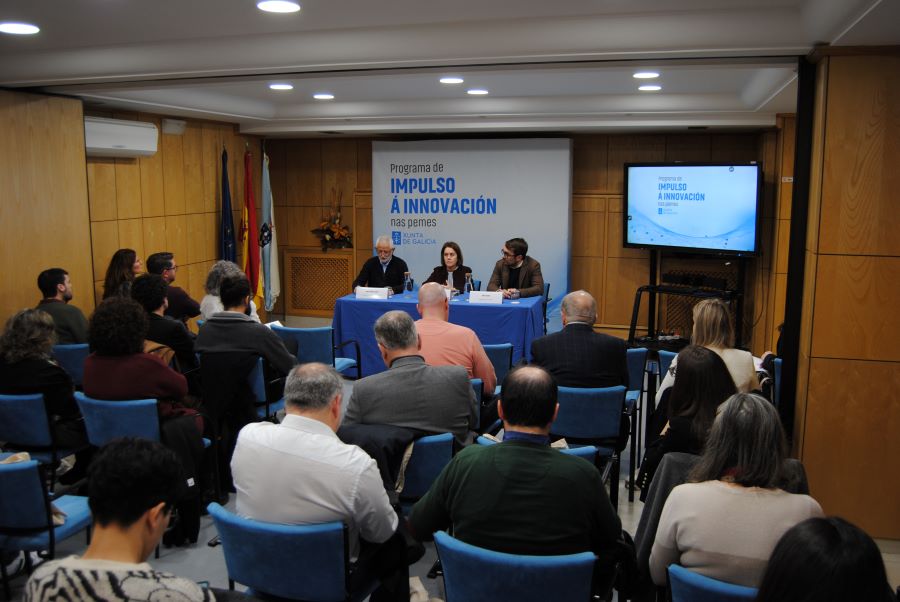 En el transcurso de la jornada, y por parte de técnicos de la Axencia Galega de Innovación, se presentaron las convocatorias de Bonos de Innovación, la línea 1 de Sinergias para programas europeos, DeseñaPeme y InnovaPeme. Bonos de Innovación, dotada con un presupuesto de 750.000 euros, tiene abierto plazo de solicitud hasta el próximo 22 de febrero. Su objetivo es impulsar los primeros pasos para innovar en autónomos, microempresas, pymes y entidades del tercer sector de acción social, y además permitir dar visibilidad a la innovación que estas llevan a cabo. Para eso, apoya la contratación de servicios externos de agentes innovadores para conseguir un salto cualitativo y cuantitativo en su actividad de I+D+i a corto plazo.