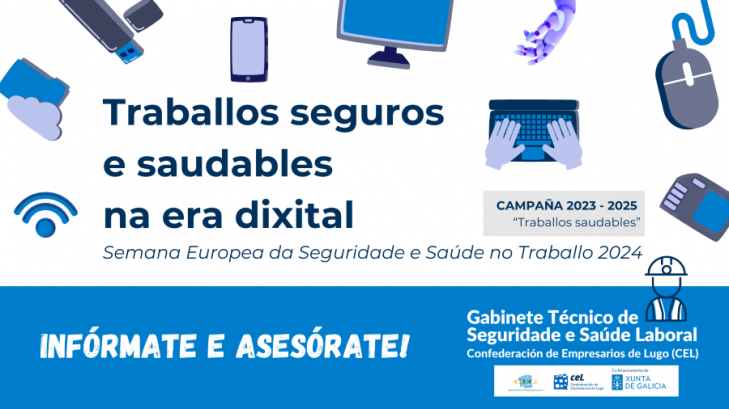 La campaña de este año, ya vigente desde 2023 y que se prorrogará hasta el próximo ejercicio 2025, lleva por título "Trabajos seguros y saludables en la era digital", y está destinada a sensibilizar, proporcionar recursos prácticos y reunir a los grupos de interés en torno a la necesidad de abordar los retos y oportunidades en materia de seguridad y salud en entornos laborales en los que las tecnologías digitales tienen cada vez un mayor impacto, tanto negativo como positivo pues no hay que olvidar que la creciente digitalización de la economía y el uso de las tecnologías digitales en el lugar de trabajo ofrecen oportunidades para las empresas y su personal, incluidas nuevas oportunidades para mejorar la seguridad y la salud en el trabajo.