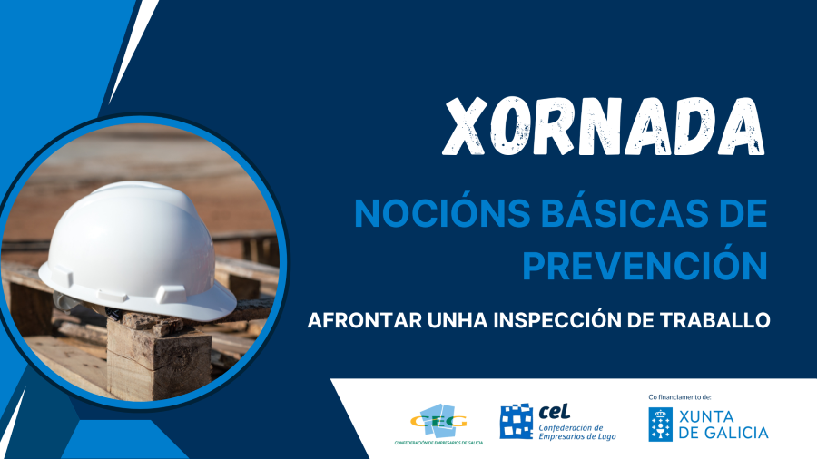 La Confederación de Empresarios de Lugo (CEL) organiza para el próximo día 20 de noviembre de 2024, miércoles, una jornada informativa que, bajo el título "Nociones básicas de prevención. Afrontar una inspección de trabajo", busca facilitar el correcto conocimiento por parte de los empresarios de la totalidad de las obligaciones que le afectan en materia preventiva, así como el correcto conocimiento de aquellas cuestiones que resulta relevante tener en cuenta en el momento de afrontar una inspección de trabajo, lo que tiene una fundamental relevancia de cara a la llevanza de la gestión preventiva de la empresa con mayor eficacia y eficiencia.