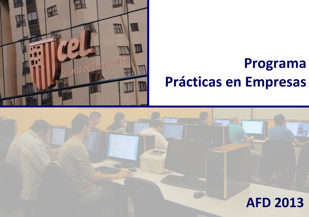 A edición 2013 do Programa de Prácticas Profesionais en Empresas da CEL xa está en marcha. As empresas de Lugo interesadas en acoller a uns alumnos en prácticas ao longo do próximo mes de novembro poden tramitar desde xa a solicitude a través da Escola de Empresarios e Centro de Formación da CEL.