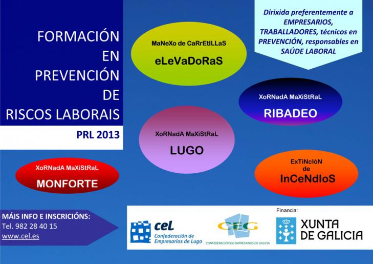 As xornadas maxistrais terán lugar no sur, norte e centro da provincia, en Monforte (o 13 de setembro), Ribadeo (o 20 de setembro) e Lugo (o 27 de setembro) respectivamente. De cinco horas de duración, baixo o título "Xestión da Prevención de Riscos na Empresa: A batalla ACTIVA da Prevención", buscan informar as liñas básicas e últimas novidades en materia de xestión da prevención de riscos laborais no seo dunha empresa, á vez que concienciar sobre a súa importancia para previr accidentes e enfermidades laborais, reducindo ao máximo a posibilidade de que as persoas sufran danos como consecuencia do seu traballo.