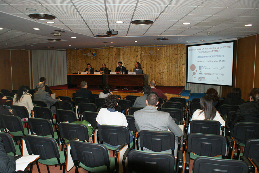 Na xornada participaron como relatores D. José Luís Naya e D. Luís Botifoll, Director Xeral e Delegado en Bruxelas, respectivamente, de ASTRON Consultores, consultora especializada en xestión internacional de proxectos, así como con Dª Elena Polo, técnico da área de servizos da Axencia Galega de Innovación (GAIN), entidade que xestiona en Galicia todo o relacionado co Programa Horizon 2020 (ao final desta noticia pode descargarse dossier con información para pemes que desexen coñecer o funcionamento desta axencia e as axudas e apoios que proporciona en relación ás novas axudas europeas).
