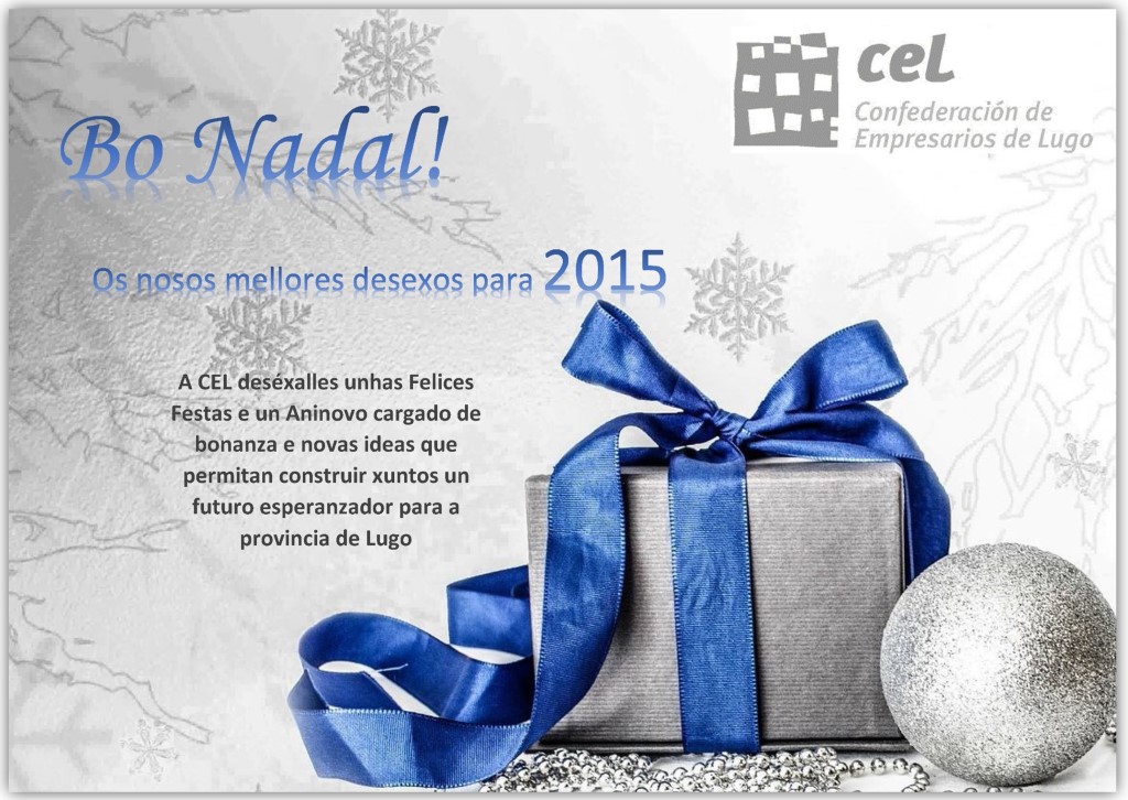 Dende a Confederación de Empresarios de Lugo (CEL) desexámoslles unhas Felices Festas e un Aninovo cargado de bonanza e novas ideas que nos permitan construir xuntos un futuro esperanzador para a provincia de Lugo.