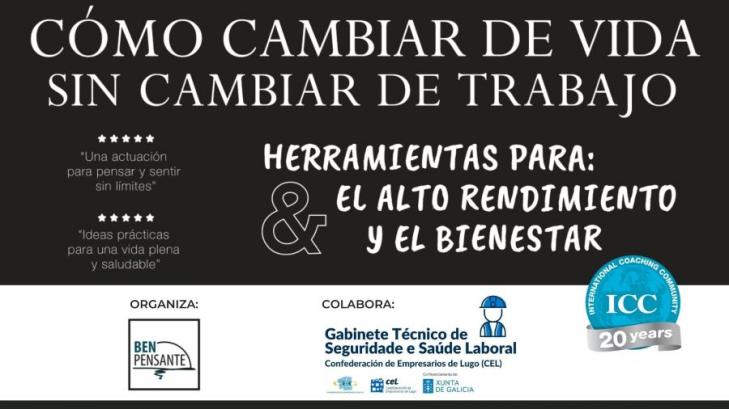 O Instituto Ben Pensante organiza, para o próximo día 23 de marzo, mércores, en Lugo, unha conferencia gratuíta que, baixo o título "Como cambiar de vida sen cambiar de traballo", informará sobre ferramentas útiles para mellorar o rendemento profesional e o benestar persoal.
