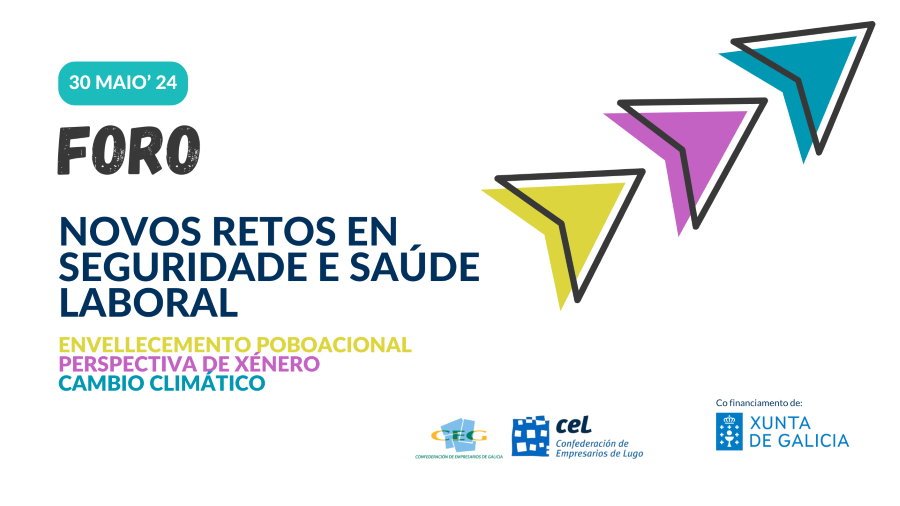 A Confederación de Empresarios de Lugo (CEL) organiza para o próximo día 30 de maio o Foro "Novos retos de seguridade e saúde laboral", no que reunirá a diferentes expertos para debater sobre cuestións chave de cara ao futuro na prevención de riscos laborais nas empresas: ter en conta o progresivo envellecemento poboacional, incorporar a perspectiva de xénero ou o cambio climático.
